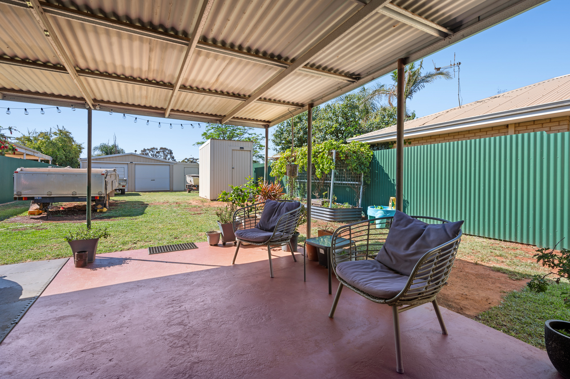 • Three Bedrooms (w/ BIR's) • Stunning Newly Renovated Bathroom • Spacious Kitchen Area, Plenty of Cabinetry • Open-Plan Dining/Living Area (Adjacent to Courtyard) • Inviting Rear Patio • Internal Laundry (Newly Tiled) • Courtyard as an Additional Outdoor Living Space • Charming Front Verandah • Evaporative A/C & Two Split Systems • Neatly Landscaped with Generous Yard Size • 6m x 6m Shed/Garage (Double Roller Door) • Garden Shed for Storage • Electric Gate at Rear (Access to Shed) • Refurbished Outdoor WC • Single Carport • Security Screen Doors and Roller Shutters • 506sqm Block Size